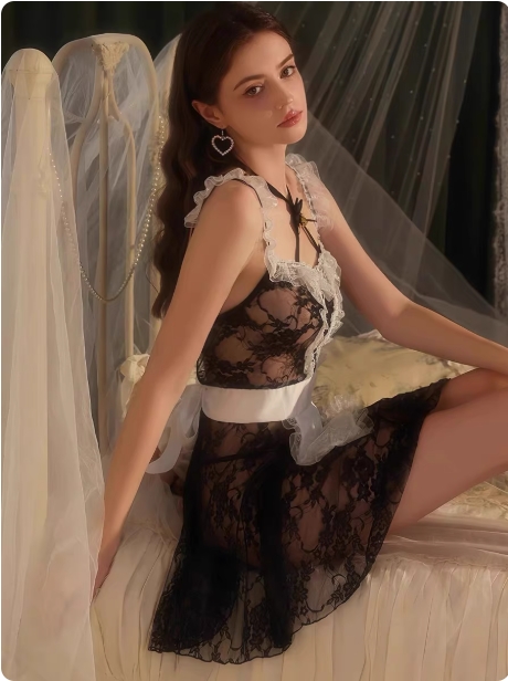 First, the luxury quality sets it apart from generic maid lingerie. No scratchy fabrics or flimsy stitching here—this set uses premium materials like smooth satin, soft stretch lace, and breathable mesh that feel indulgent against the skin. The attention to detail (think reinforced seams, (exquisite) bow accents, and a structured yet flexible apron) elevates the “maid uniform” aesthetic from “costume-like” to “high-end intimate wear,” so you feel elegant and sexy.