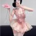 - Silhouette: The main piece (a form-fitting chemise or corset-style top) features a V-neckline (with lace trim) that flatters the bust, while the adjustable sash cinches the waist for an hourglass shape. The attached apron (detachable in some sets) adds structure without hiding curves, and the ruffled hem hits mid-thigh to lengthen the legs.