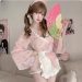 - Emotional Ambiance Robe: A lightweight, loose-fitting robe with a fuzzy collar (for warmth) and lace trim along the cuffs and hem (matching the stockings and top). The robe features a tie waist for a customizable fit, transitioning from playful to cozy seamlessly.